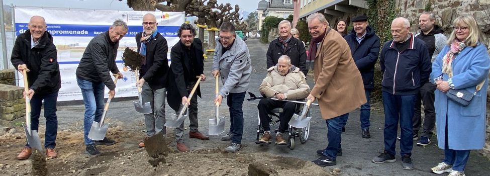 Mit dem symbolischen Spatenstich haben am Freitag (20.03.2026) die Baumaßnahmen für die Neugestaltung der Unkeler Rheinpromenade begonnen. Der Weg entlang des Rheinufers ist das touristische Aushängeschild der Stadt - und in die Jahre gekommen. Die geschotterte Fläche, fehlende Beleuchtung und mangelnde Barrierefreiheit entsprechen nicht den heutigen Anforderungen. Die Rheinpromenade wird jetzt auf einer Länge von 350 Metern saniert.